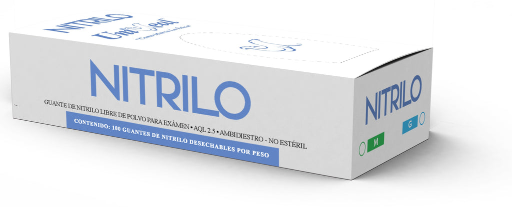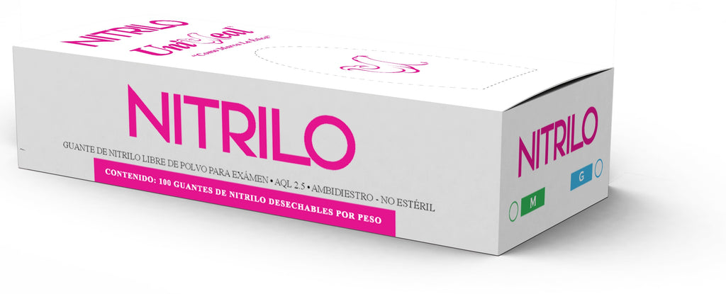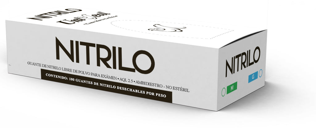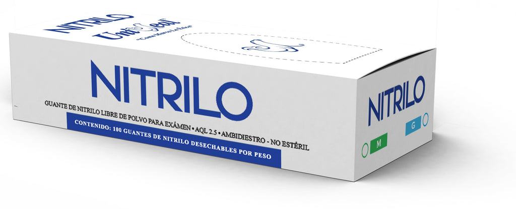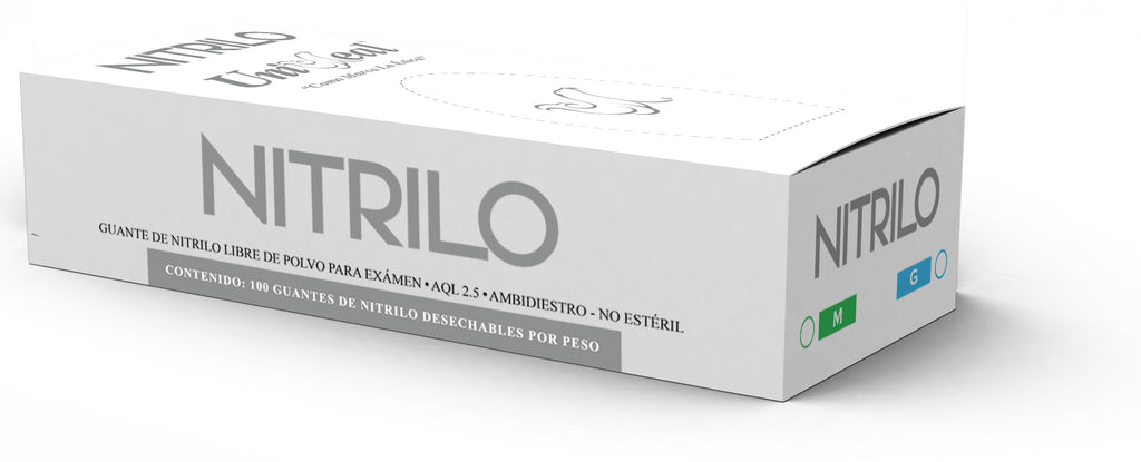 UniSeal Nitrilo de 3.5 grs. son Guantes de Nitrilo para examen con superficie Texturizada en los dedos para una mejor sujeción; ambidiestros, No estériles, Libres de Polvo Lubricante USP.Indispensables en Medicina, Odontología, Podología, Veterinaria y cualquier otra aplicación de la medicina. También son útiles en el campo de la belleza, tatuajes, industrias y el hogar.Ventajas:Alta Resistencia con un AQL de 2.5.Guantes Libres de Polvo Lubricante USP.Guantes Libre en Proteínas (Hipoalergénicos).Superficie Texturizada en Dedos para Mejor Sujeción.Gran ajuste Anatómico y Confort.Alta Sensibilidad al Tacto.Superan la Exigente Normatividad Internacional.