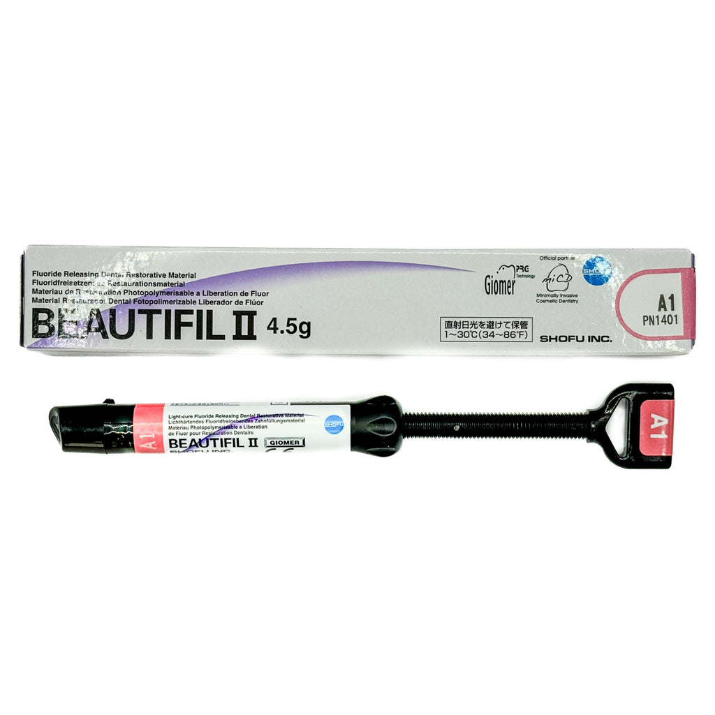 Resina nanohíbrida universal con liberación de flúor.Diseñada para restauraciones directas en dientes anteriores y posteriores, el Beautifil II combina estética, resistencia y protección dental.Gracias a su tecnología GIOMER, libera y recarga flúor, ayudando a prevenir caries secundarias y mantener dientes más sanos.?? Alta estética con efecto camaleón (se adapta al color del diente)?? Ideal para caries clase I-V, carillas, y reparaciones estéticas?? Radiopaca, pulido duradero y superficie lisa?? Presentación: jeringa de 4.5 g