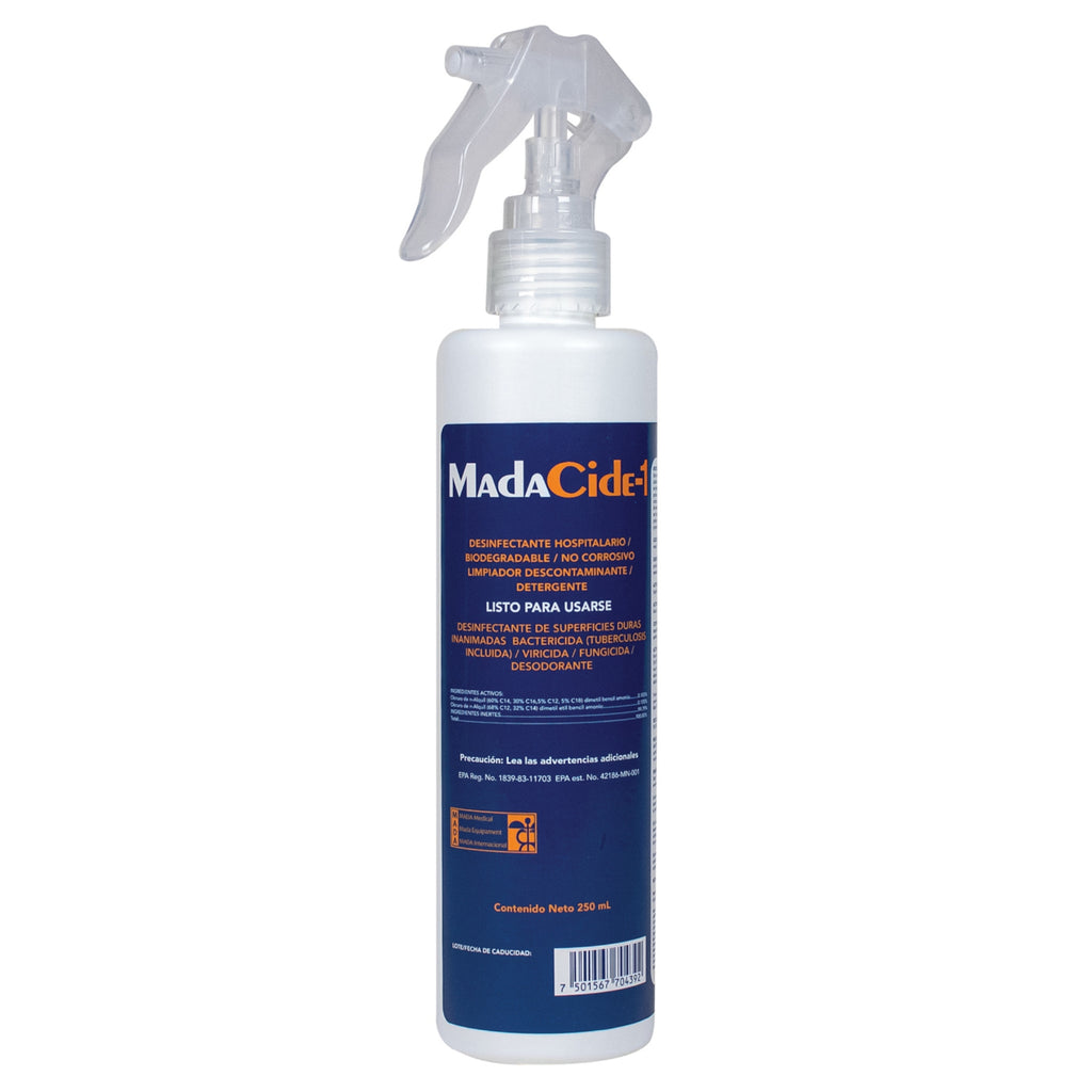 MadaCide® es una línea de desinfectantes de grado hospitalario de la marca MadaCide / Mada Medical Products, Inc. diseñada para la limpieza, desinfección y desodorización de superficies duras no porosas en ambientes clínicos, dentales, quirúrgicos y otros entornos profesionales.