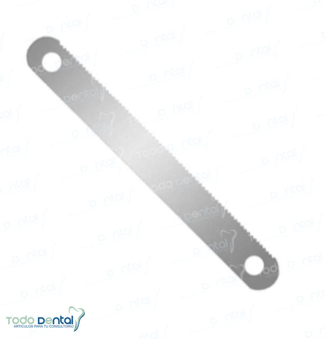 Sierras intercambiable para la eliminación de exceso de resina, composites, adhesivo, cemento o amalgama en áreas proximales.- Sierra con un grosor de aproximadamente 0,05 mm.- Permite un fácil acceso a la región interproximal sin dañar el punto de contacto.- Permite la eliminación de exceso de composites, adhesivos y cementos en las regiones interproximales.- Repuestos compatibles para Microcut.