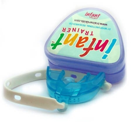 Infant Trainer es un aparato de tamaño único que motiva a los pacientes en dentición primaria a masticar correctamente y ejercitar sus músculos masticatorios. Pero, lo más importante, el Infant Trainer favorece la respiración y la correcta posición de la lengua. Las investigaciones, claramente, ilustran que el crecimiento facial, maxilar y dental correctos dependen mucho de esos factores.